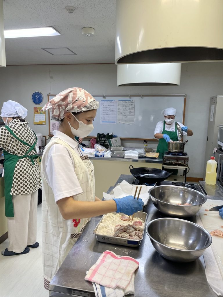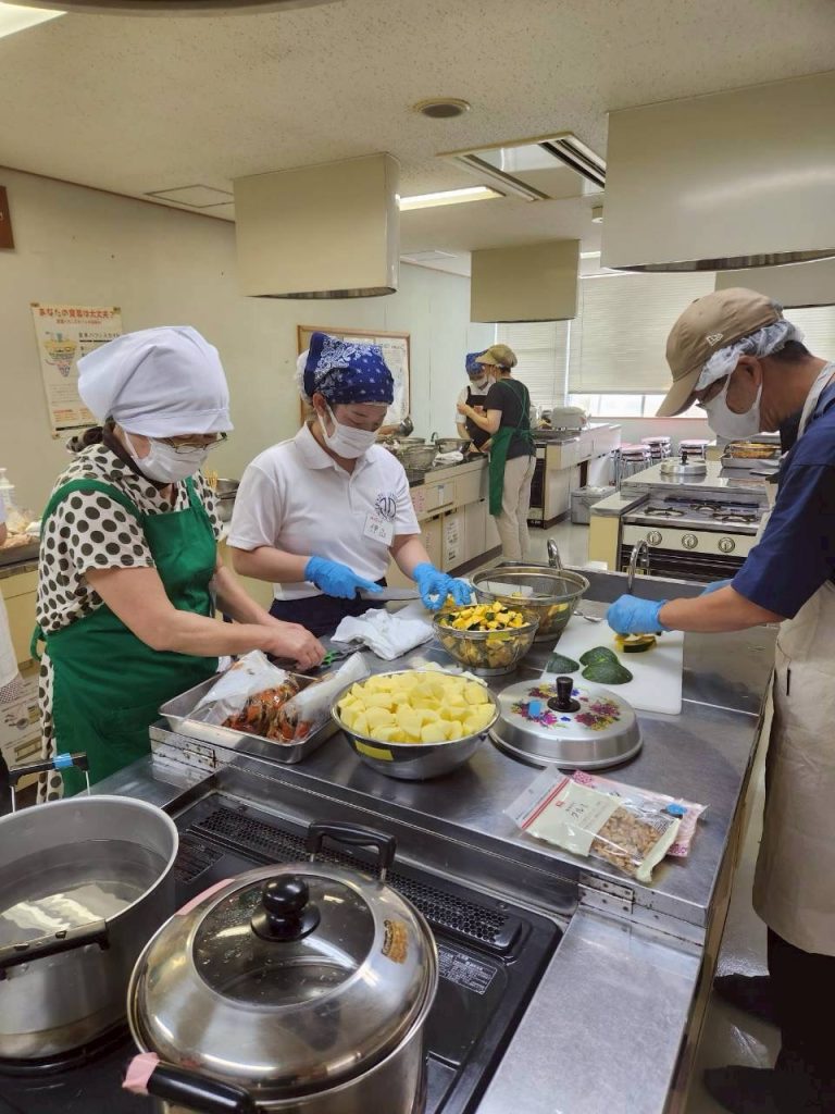 9月6日の由比支部は順天堂大学の生徒さん3人が参加 とても明るい3人にスタッフも楽しく調理ができました