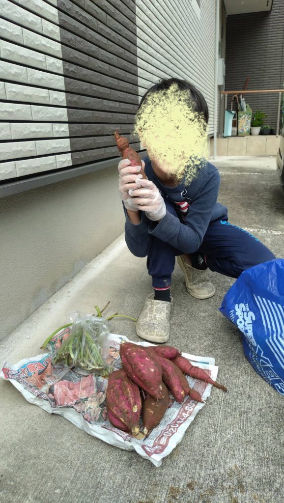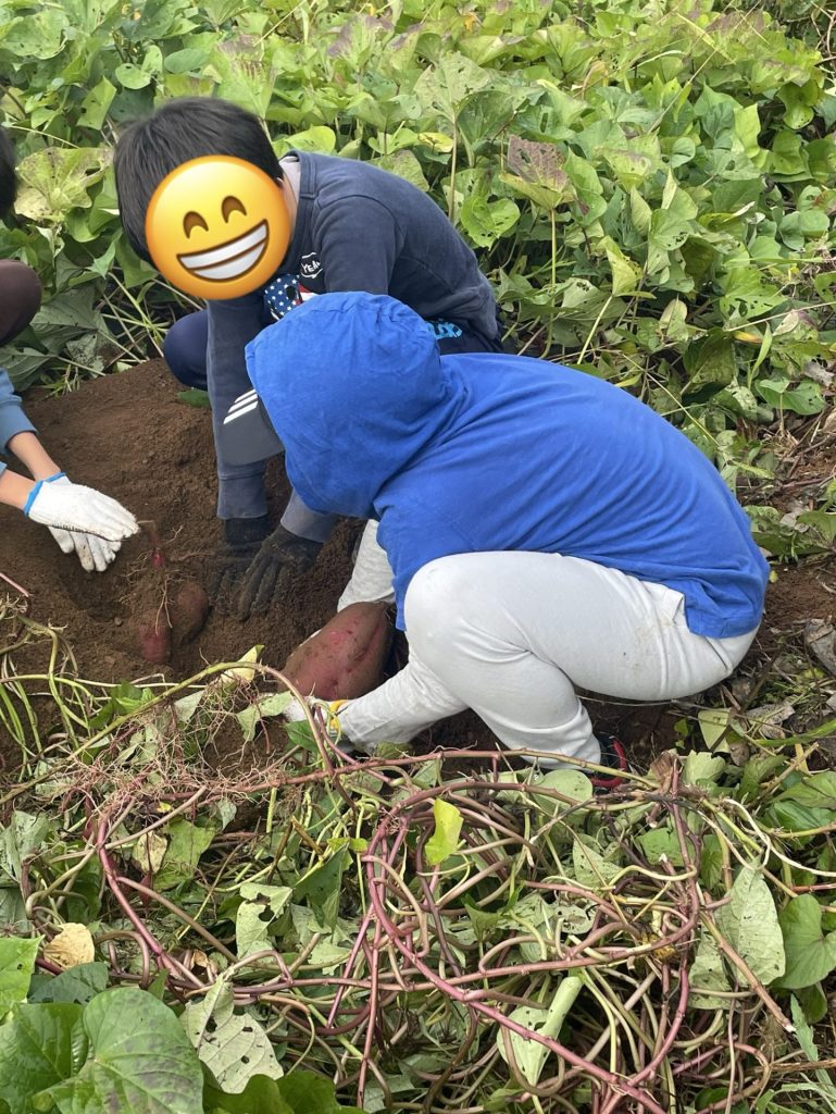 えっ!(◎_◎;) つるしか無い? 掘ってみる? おかしいな〜 隠れてるね〜 子ども達は楽しい収穫となりました♪