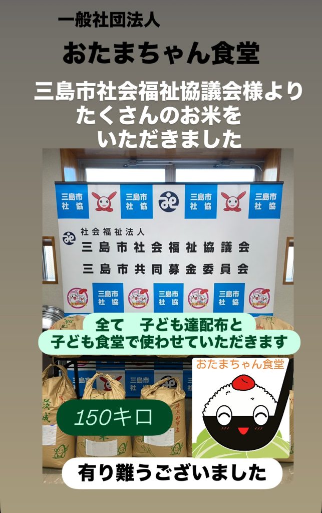 本当にお米は有り難いです 年間5,000食のお弁当と給食の無い長期休みには ひとり親家庭の方へ お米を配布いたします。