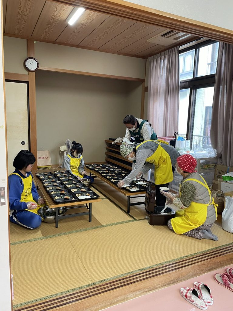 皆さん頑張って作ってくださっています 学生の方も一緒になってお弁当作り