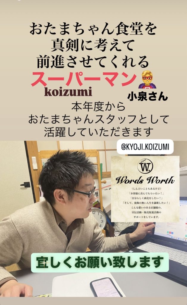 来年度から おたまちゃん食堂の理事として活躍してくださいます。