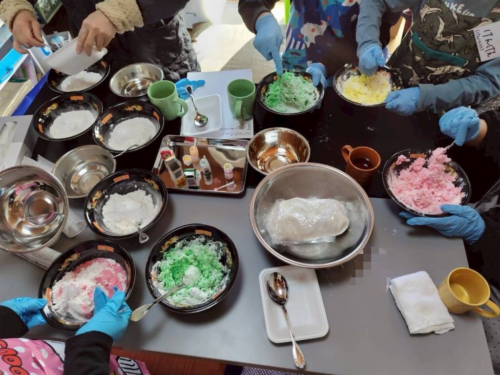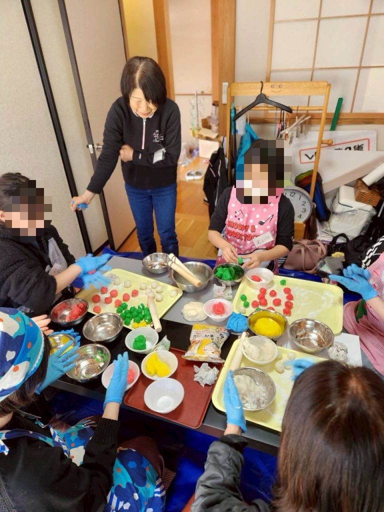 皆んな真剣👀 初めての団子作りに 粘土みたい😅 失敗しても良い!